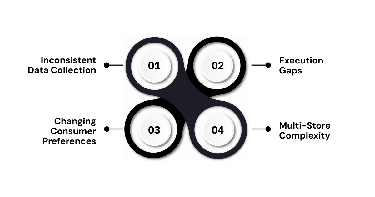 - Complexity Across Multi-Store Networks: Managing assortments at scale is challenging. What works in one store or city may not work in another. Tracking SKU performance across hundreds of locations requires detailed, real-time insights.